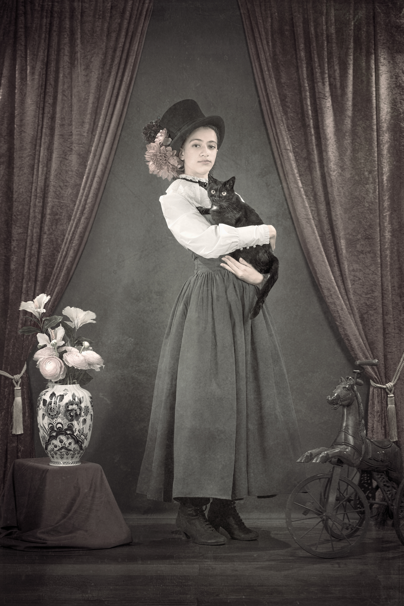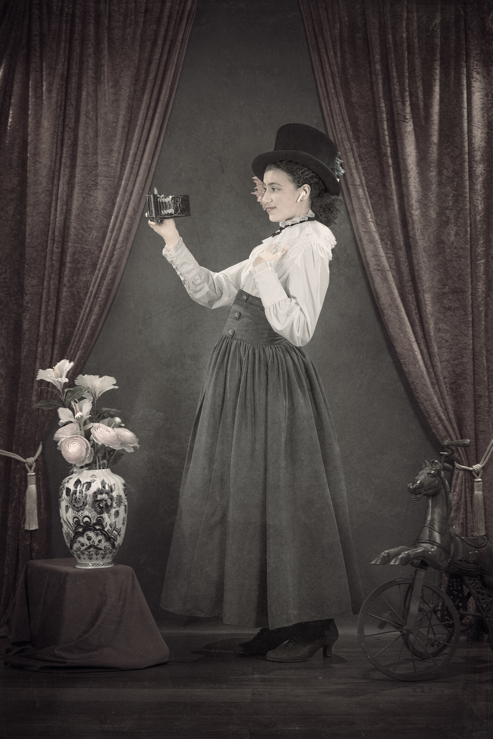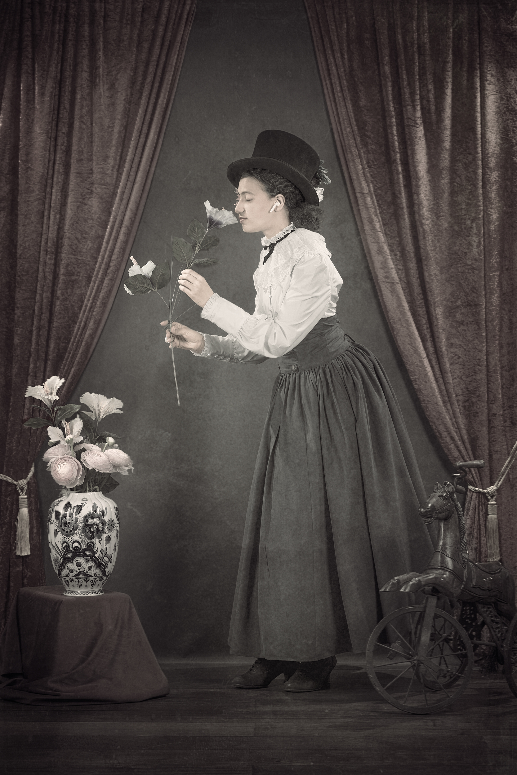 A personal fine art series of seven images paying tribute to the vintage portrait tradition of the early 20th century. Created to mark 120 years of photography, the work reinterprets the formal codes of historical portraiture — framing, light, posture — through a contemporary lens, inviting a dialogue between past and present.