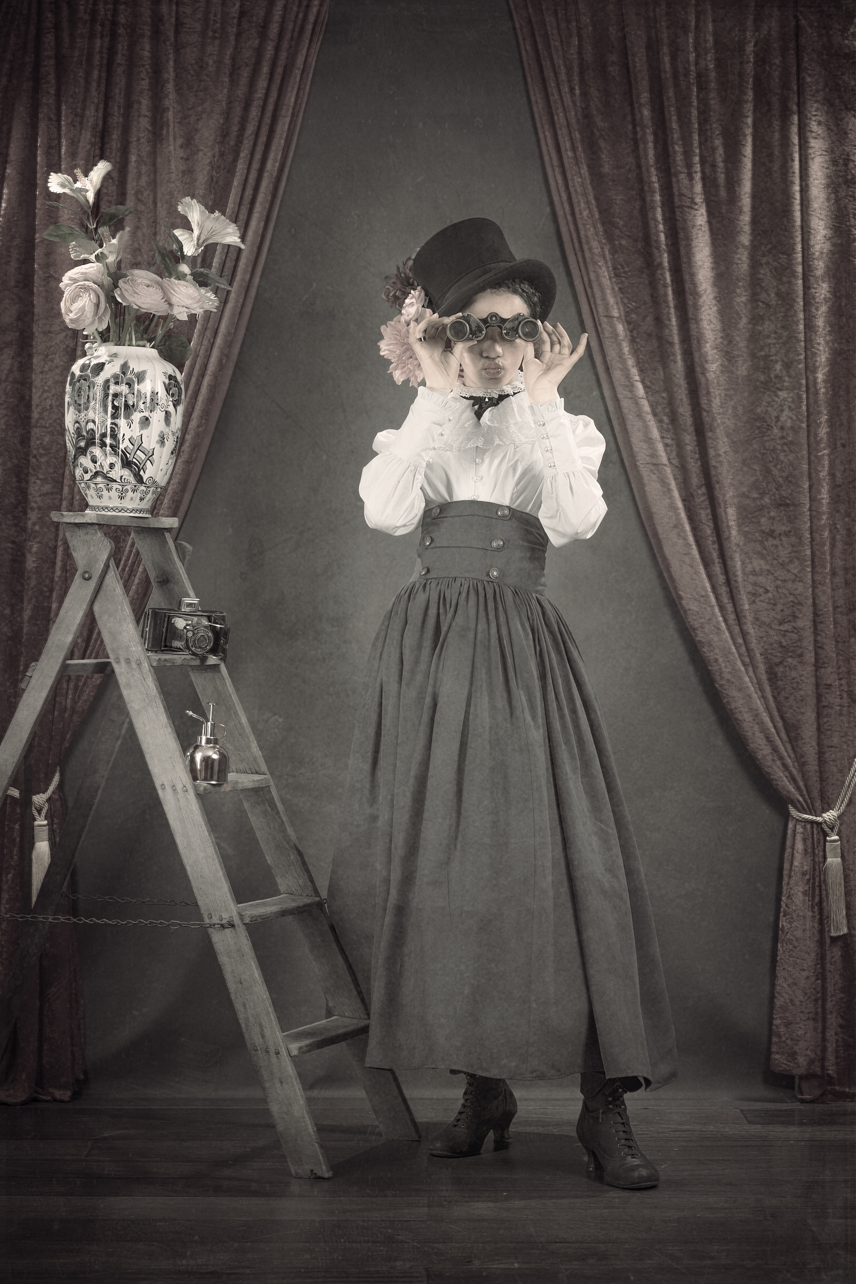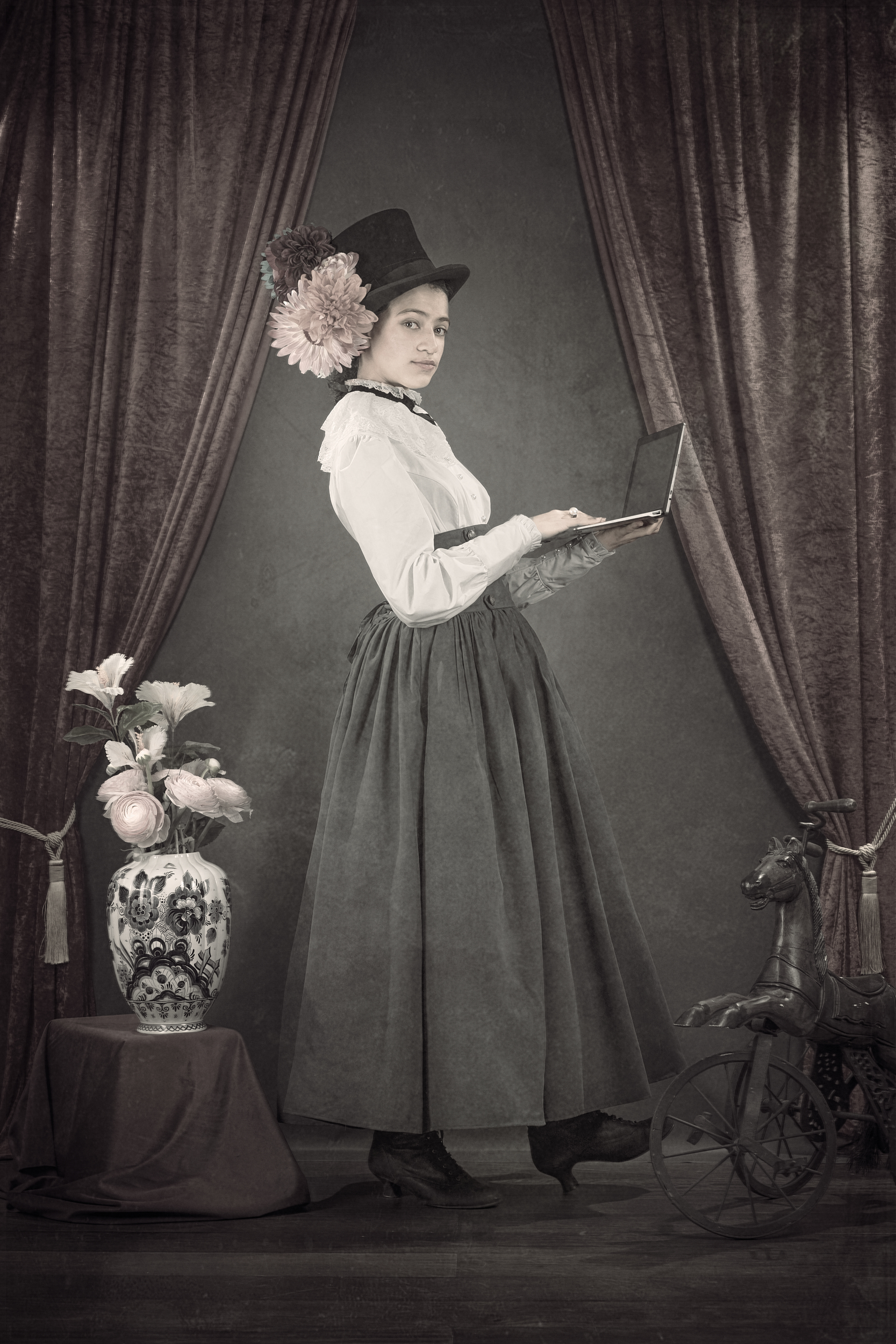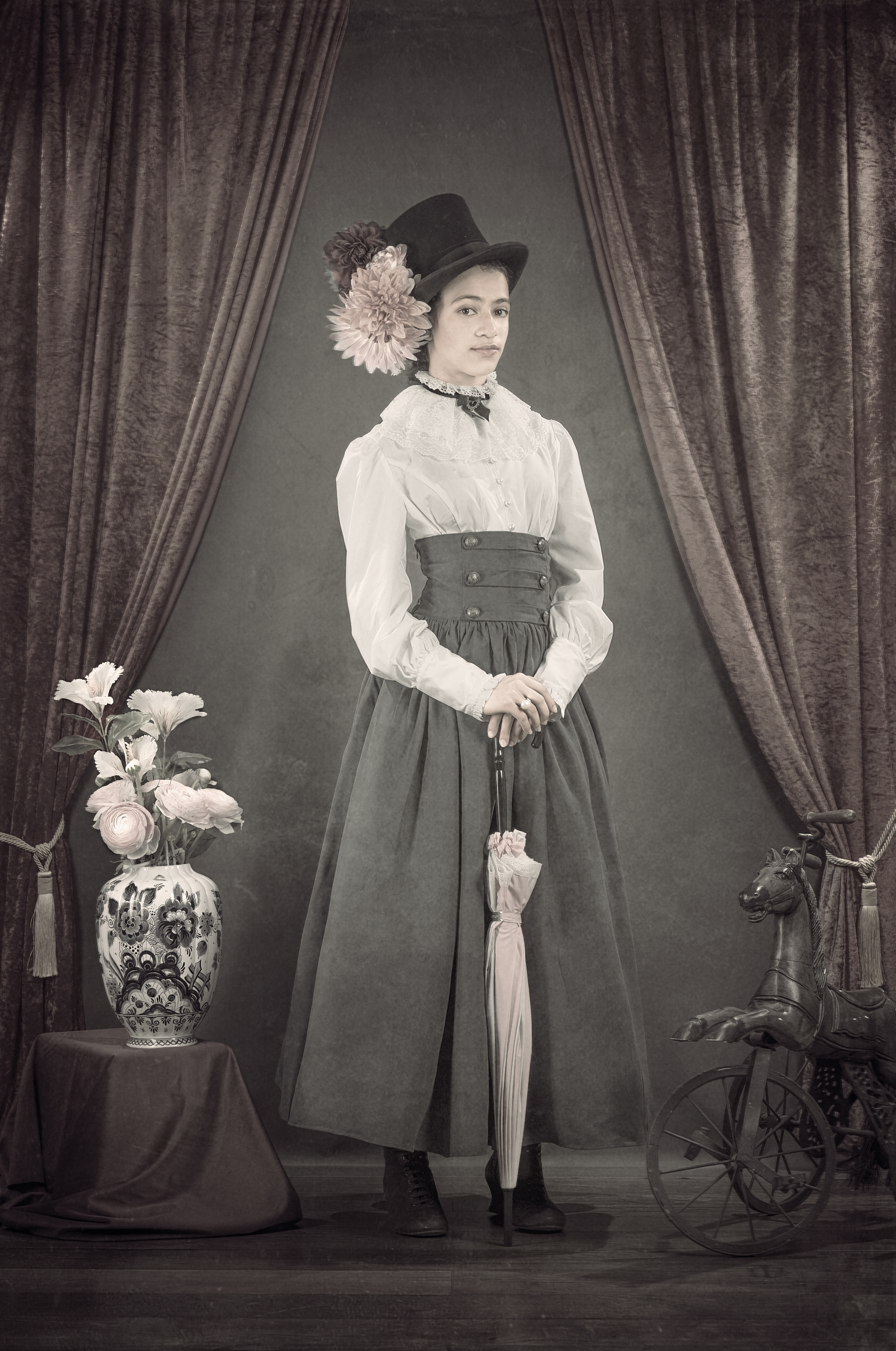 A personal fine art series of seven images paying tribute to the vintage portrait tradition of the early 20th century. Created to mark 120 years of photography, the work reinterprets the formal codes of historical portraiture — framing, light, posture — through a contemporary lens, inviting a dialogue between past and present.
